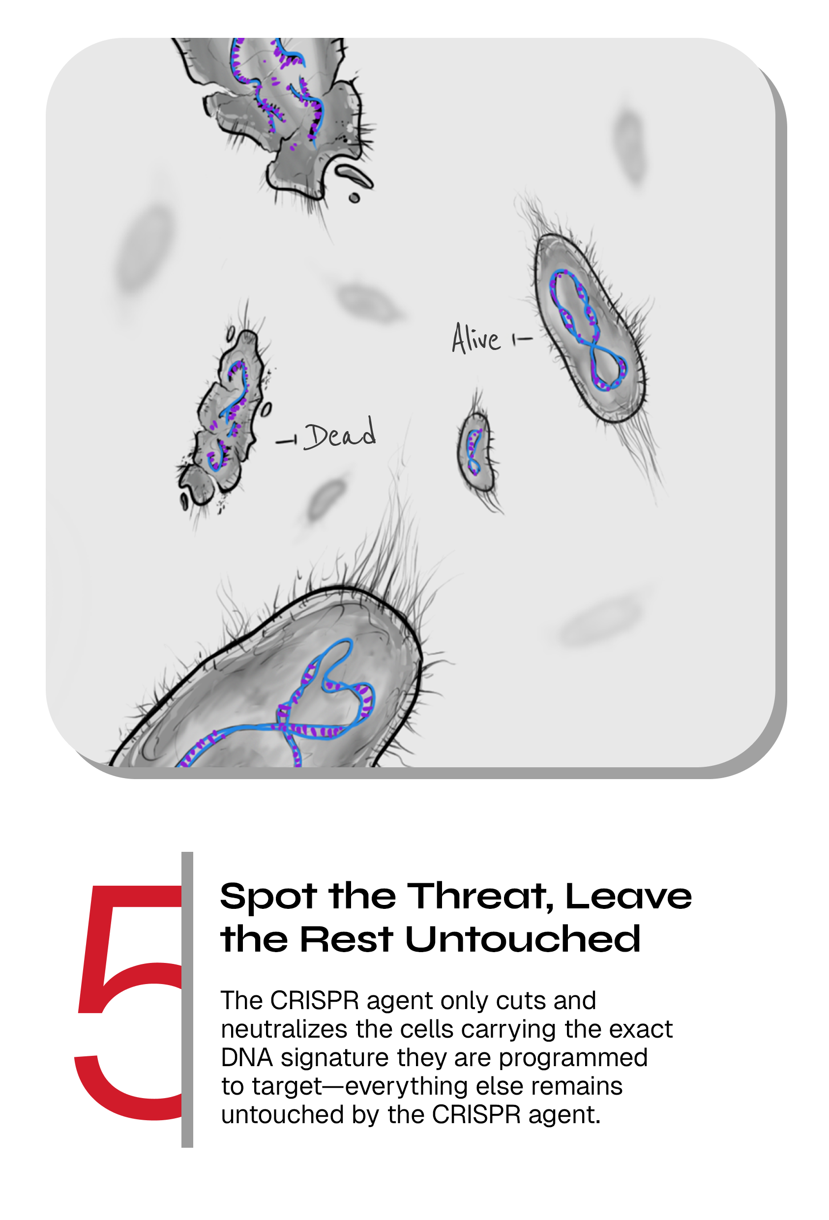 Our proprietary CRISPR and delivery platforms allows us to specifically target and remove any antimicrobial resistance gene or kill any bacterium. Our technology is agnostic to any antimicrobial resistance profile of the target bacteria. It all starts with programming our CRISPR systems